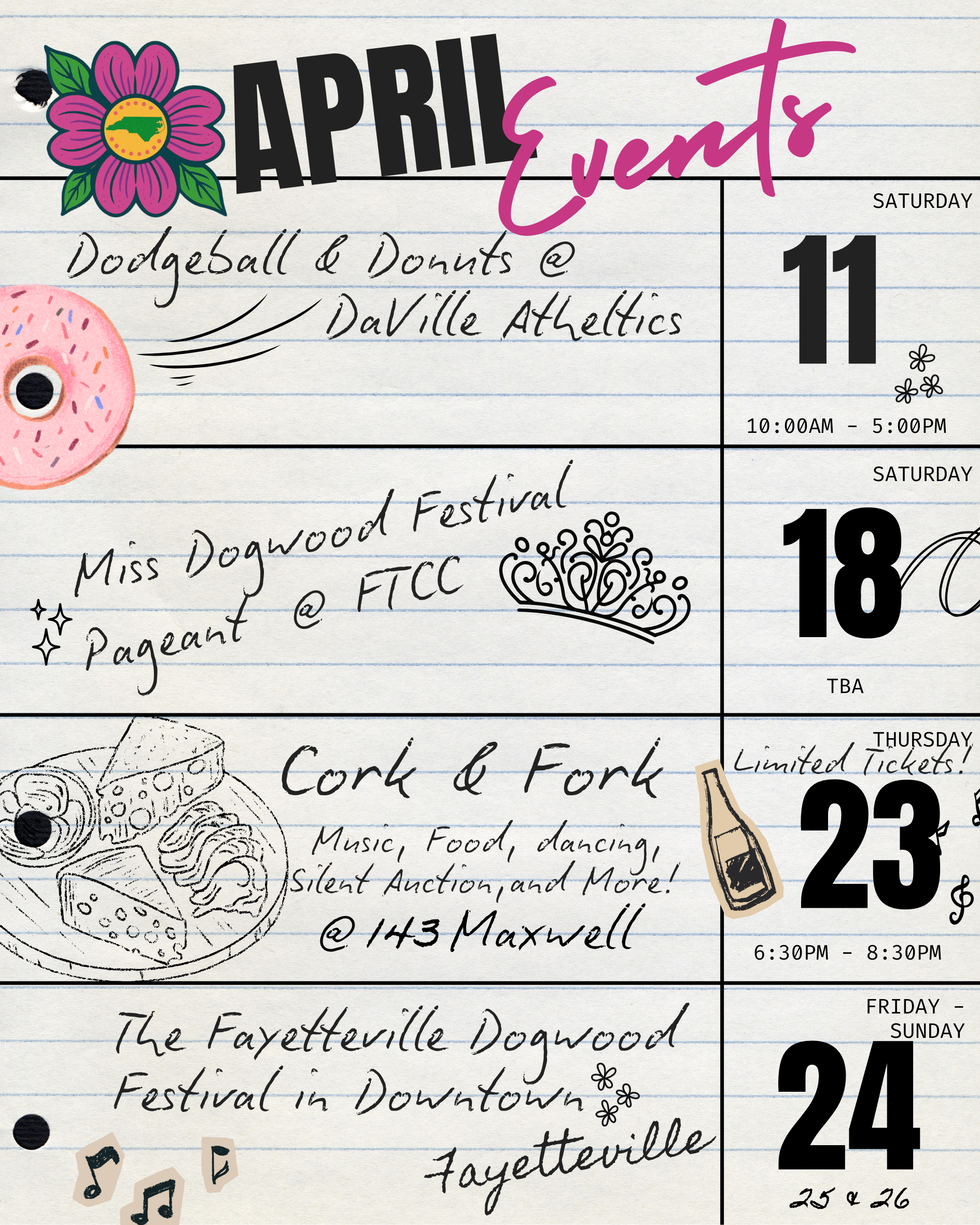 Here are our official dates for all our upcoming events through 2026. That means more music, more food, more family fun, and even more traditions… both old favorites and brand-new experiences coming your way. Get ready, save the dates, and stay tuned in with your local favorite festival as we continue to bring joy, connection, and community pride to Fayetteville. We can’t wait to welcome our amazing neighbors and guests from near and far!